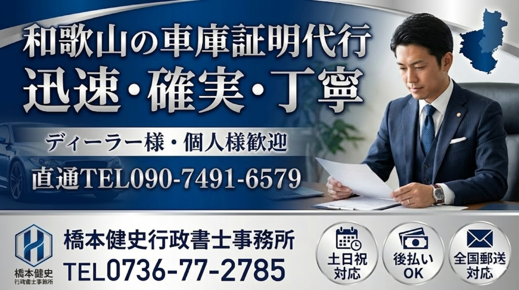 和歌山県の車庫証明 最短即日代行 インボイス対応済 橋本健史行政書士事務所